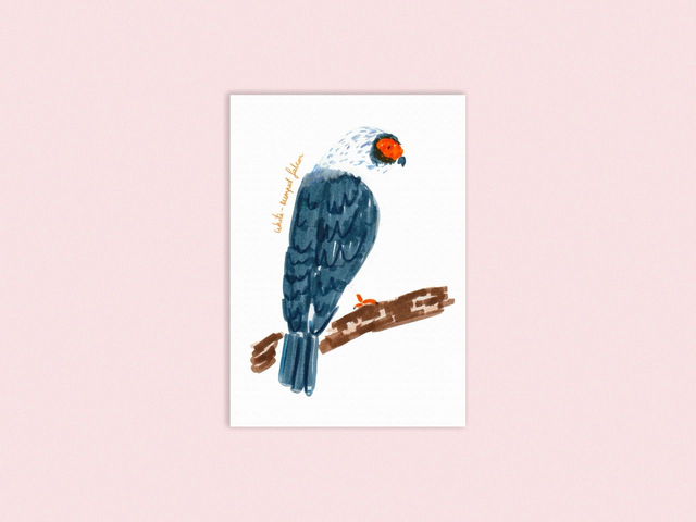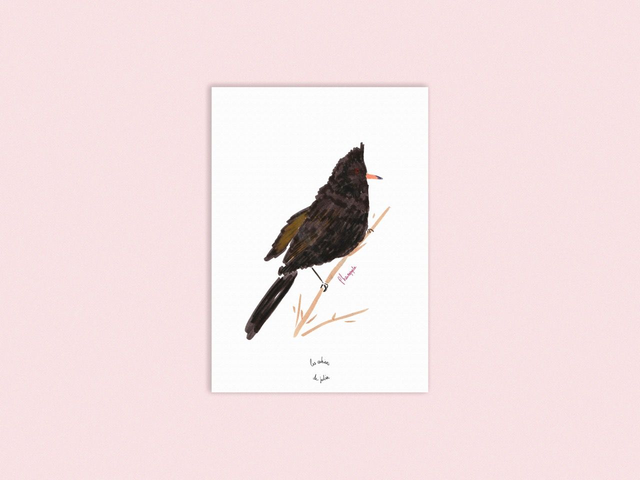 6 cartes postales oiseaux : Colibri à coiffe blanche - Coucou foliotocol - Fauconnet à pattes jaunes - Ibijau jamaïcain - Manchot de Magellan - Phénopèple luisant